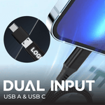 Introducing the 3 in 2 Cable Glow with LED Light Up Logo, your go-to solution for fast charging and modern style. This cable not only powers your devices quickly but also enhances your tech setup with a vibrant LED logo that stays visible in low light. Built for on-the-move use, it combines reliability with a sleek, eye-catching design.