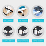 Meet the 5 in 1 Quick Charge Spring Cable with Case, a versatile solution for charging and data transfer on the go. Designed for durability and organization, this cable extends to 85 cm and stores neatly in its protective case, making it ideal for travel and daily use.