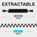 The cable emphasizes compact storage and a spring cable design that stays neat when not in use, reducing tangles for a smoother, versatile charging solution. Built for durability, it's ready for home, office, and road trips.