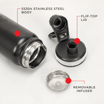 Generous 800ml (27oz) capacity ensures you stay hydrated longer. Built with double-wall vacuum insulation and durable stainless steel, this insulated bottle resists condensation and preserves flavor. Designed as a reliable hydration bottle, it suits workdays, workouts, and adventures.