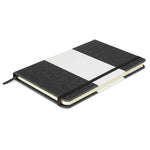 The Alexis Notebook is a medium-sized (approximately A5) notebook designed for both style and functionality. Its cover features a chic combination of heather-style PU and leather-look white PU, making it a standout accessory.