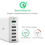 The Anker PowerPort+ 6 Ports 60W With Quick Charge 3.0 Charging Station delivers fast, reliable charging for every device. This 60W charger offers six USB ports and Quick Charge 3.0 compatibility, making it a practical multi-device charger for home or office use. With one high-output port and multiple USB connections, you can juice up smartphones, tablets, wearables, and more without clutter.