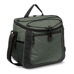 Crafted from premium heather-style poly-canvas, this cooler bag features a large zippered front pocket and two mesh side pockets for added convenience. Its smart zipper pulls, woven carry handle, and trendy elastic lacing make it perfect for outdoor adventures.