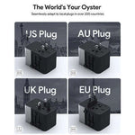 With 65W total output and the ability to charge simultaneously via one USB-A and four USB-C ports, this charger is built for efficiency on the road. The universal plugs cover the major regions—US, UK, EU—so you can travel without adapter chaos. Compact enough for any bag, it streamlines your charging setup while keeping devices ready when you land.