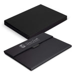 Introducing the Lancaster Portfolio—a stylish, functional accessory designed for professionals. Crafted from high-quality PU leather, it features a sleek dome closure for secure, quick access and a convenient pen loop for effortless note-taking on the go.