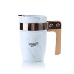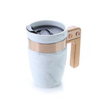 Its marble-inspired ceramic body with a stainless steel rim delivers a timeless, elegant design, while the warm wooden handle provides a comfortable grip for long sips.