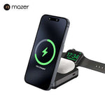 Introducing the Mazer MagFold Trio Qi2 Certified 15W Foldable 3-in-1 Wireless Charger, designed to streamline power for iPhone, Apple Watch, and AirPods.