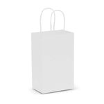 The Paper Carry Bag - Small is crafted from durable 180gsm kraft paper, ensuring strength and reliability. Its robust paper rope handles provide a comfortable grip, making it ideal for carrying a variety of items.