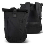 Designed for functionality, it features a spacious main compartment with internal padding, ensuring your devices are well-protected. The roll top with snap closure and two zippered side pockets provide added convenience. With adjustable padded shoulder straps and a padded back, this water-resistant backpack is perfect for any journey, including a luggage trolley pass-through for easy travel.
