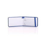 Built with durable leatherette tag construction, it stands up to frequent use and rough handling. This luggage identifier keeps your essentials visible, while an integrated ID card tag slot ensures your contact details are easy to access. An elastic closure secures the tag to any luggage handle without slipping. The blue luggage tag design adds a touch of style to your travel gear.