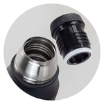 This flask is equipped with a screw-on cup for convenience and a black carry handle for easy transportation. It is BPA-free, making it a safe choice for all your beverage needs. The Wayfarer Flask is presented in a sleek black gift box, perfect for gifting.