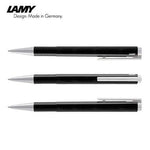The Lamy Logo Pen is a timeless retractable ballpoint pen, expertly crafted from highly polished ABS plastic. Its sleek design features a finely tuned, spring-loaded metal clip and shiny chrome accents, making it a stylish addition to any writing collection.