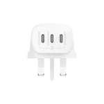 Belkin WCC002myWH 67W Triol USB-C PD3.1 PPS Gan Charger delivers fast charging for laptops, phones, and tablets with a compact GaN design. This multi-port charger uses PD3.1 PPS to optimize power delivery for each device, ensuring safe, efficient charging on the go.